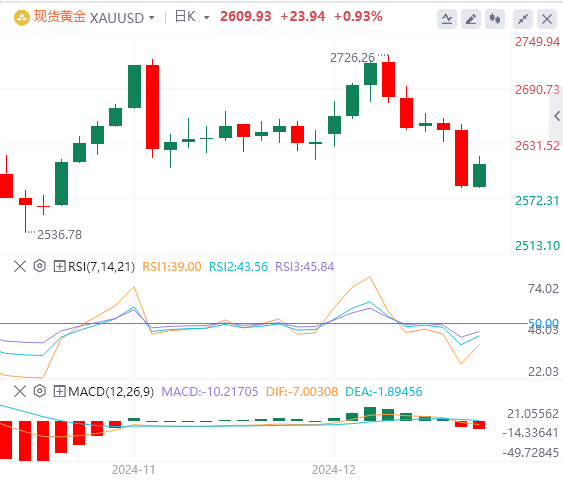 从技术角度来看,隔夜2023年10月以来首次收盘跌破100日均线(SMA)2600美元关口后被空头视为新的触发因素。此外,日图上的震荡指标刚刚开始获得看跌动能,表明黄金价格阻力最小的路径仍然是下行。与此同时,周四试图回升的势头在2618美元区域附近停滞,该区域是上周触及的自逾一个月高点以来的新一轮趋势的23.6%斐波那契位。若突破该区域,将出现新一轮空头回补可能会推动黄金/美元升向38.2%菲波纳契位2635美元区域,进而升向50%菲波纳契位即2655-2656美元附近的阻力区。