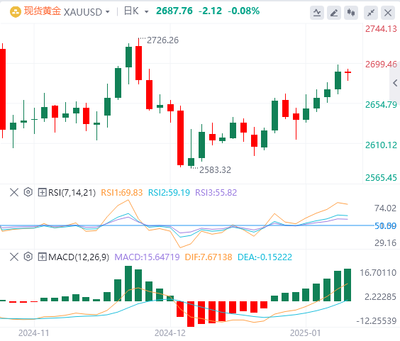 不利的一面是,支撑位保持在2663.63美元,在2645.18美元附近更强,200天EMA在2648.48美元加强了支撑。50天EMA为2668.68美元,表明短期上涨势头,而整体趋势仍然谨慎。