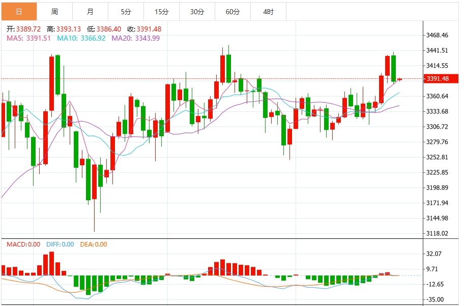 3、黄金期货在美国贸易协议乐观情绪的带动下小幅走低