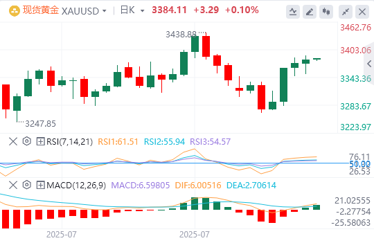 周二,现货黄金走出V型反转,盘中触及3390美元关口,截至目前,黄金报价3384.11。
