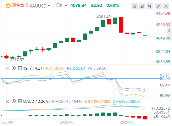 从技术角度来看,该商品现在似乎已经在7月至10月井喷反弹的23.6%斐波那契回撤位下方找到了接受度。然而,上周从4,000美元心理关口附近反弹以及日线图上的混合震荡指标需要对黄金空头保持谨慎。反过来,这表明随后跌破周五的波动低点(4,044美元区域附近)可能会继续吸引上述关口附近的一些买家。其次是38.2%的斐波那契。回撤位在3,948美元区域附近,如果果断突破,可能会将金价拖至3,900美元以下水平。一些后续抛售应该会为跌向50%回撤位(3,810美元至3,800美元区域附近)铺平道路,然后升至50日简单移动平均线(SMA),目前固定在3,775美元区域附近。