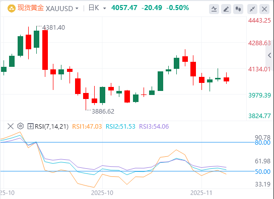 国际现货黄金呈现试探性复苏,主要受技术性调整和美联储12月降息预期增强推动。美联储理事沃勒公开支持下月降息,与市场预期形成共振,印证了12月宽松可能性增加的观点。核心逻辑在于:更低的政策利率将降低实际收益率,削弱持有黄金等无息资产的机会成本,从而强化中长期需求。尽管短期交易疲软,但近月黄金期货连续下跌后,投资者正重新评估宏观政策环境。