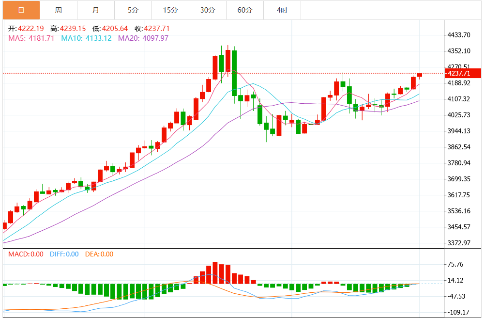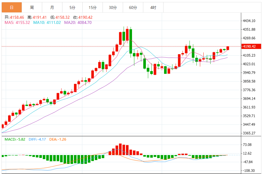 金价在亚洲时段一度冲高至两周最高位,现货黄金最高触及4193美元附近,随后虽小幅回落,欧市盘初,金价窄幅震荡,但整体仍牢牢守住了前一日的绝大部分涨幅。目前现货黄金在4180美元附近高位震荡,距离4200美元整数心理大关仅一步之遥。市场多空双方正在此展开激烈争夺,一旦突破4200美元,黄金有望迎来新一轮爆炸式上涨