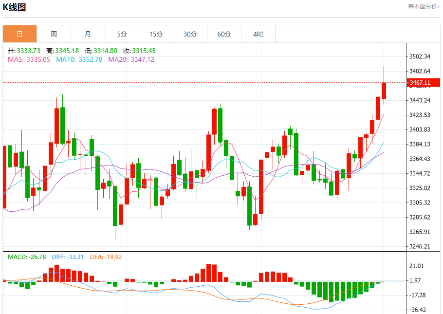 周四盘中,现货黄金报3398.48,涨幅0.04%。 今日分析:在3385.00之上,看涨,目标价位为3405.00,然后为3415.00。 技术点评:随后的阻力位是3405.00,然后为3415.00。 支撑位:3385.003380.003374.00 阻力位:3435.003415.003405.00 (亚汇网编辑:冰凡)