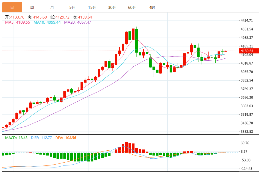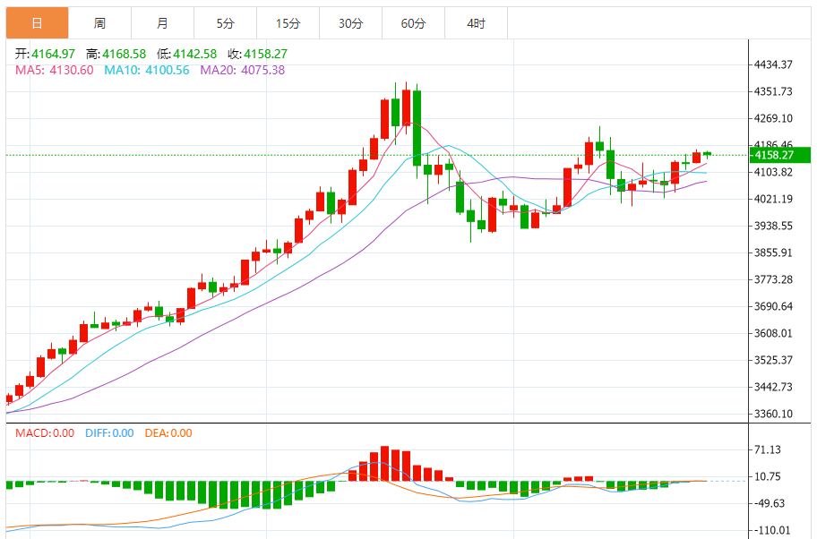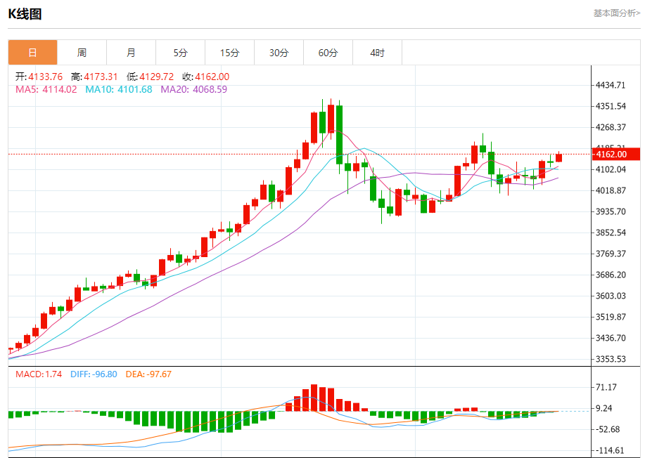 周四盘中,现货黄金报4158.23,跌幅0.15%。 今日分析:在4140之上,看涨,目标价位为4173,然后为4185。 技术点评:超短线(当日内)技术指标缺乏动能 支撑位:414041284109 阻力位:420041854173 (亚汇网编辑:冰凡)