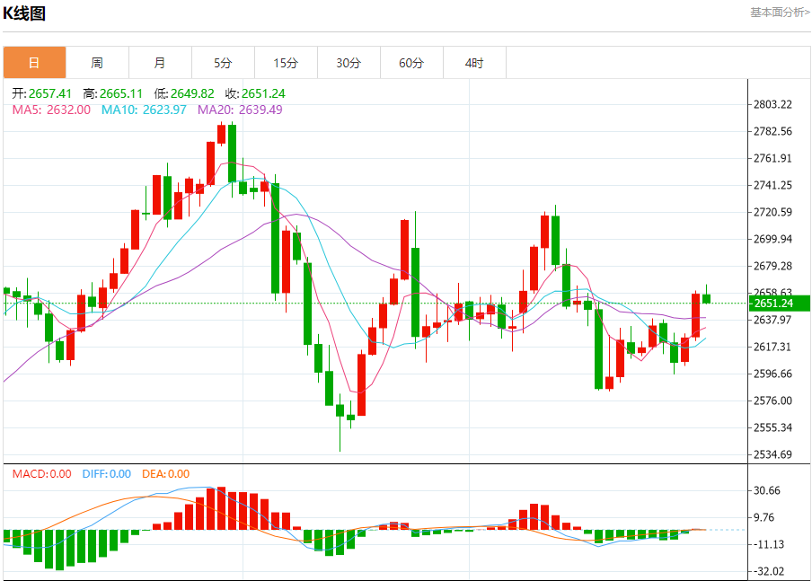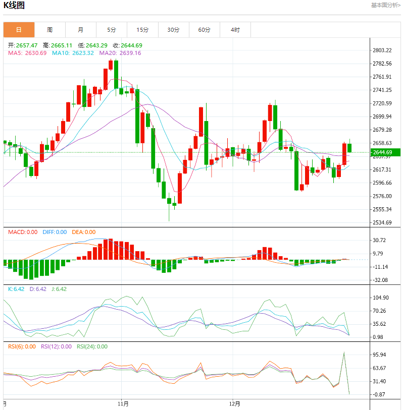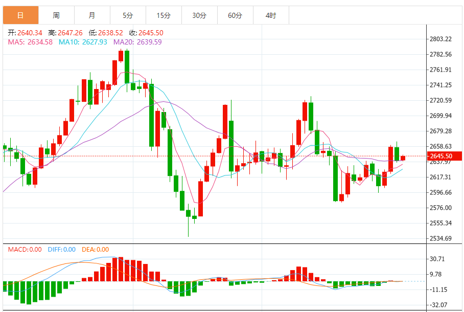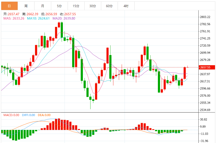 金价周四大涨1.28%,盘中触及逾两周新高至2660.34美元/盎司,收报2657.89美元/盎司,受避险买盘推动,市场评估美联储利率前景和美国当选总统特朗普贸易关税提议的可能影响。黄金价格一度触及每盎司2665美元的高点。从技术面来看,这一水平可能成为一个卖出黄金的良好机会。历史数据显示,黄金价格通常在这一水平附近出现