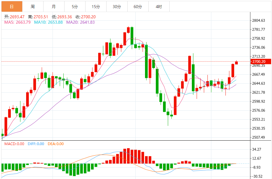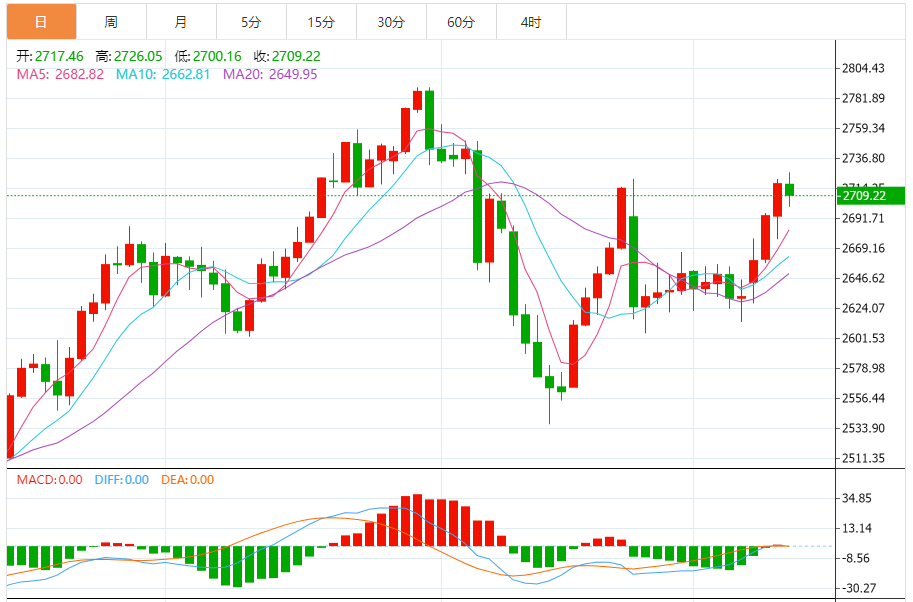 周四(12月12日)亚盘,金价高位震荡,现货黄金目前交投于2711.30美元/盎司发附近。金价周三上涨逾20美元,为连续第四个交易日上涨,盘中最高曾触及2720.98美元/盎司,仅略低于11月25日创下的一个月高点2721.21美元/盎司;此前公布的通胀数据符合预期,提高了美联储下周降息的可能性,同时投资者等待美国生产者价格指数(I