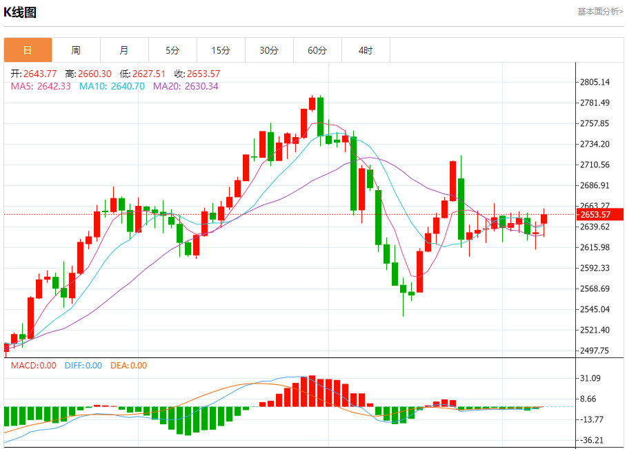 黄金走势主要点位解析 周三,1小时黄金波动轨指标关键点位2675、2683、2705、2712。黄金波动轨主要用在震荡行情,运用波动轨中轨(红色线)判断是趋势还是震荡行情,中轨稍稍朝上,先看做震荡偏多行情。在震荡行情当中,则主要考虑行情运行到波动轨轨道附近的博弈反转机会。关注1.5倍波动轨下轨2683或者2.5倍波动