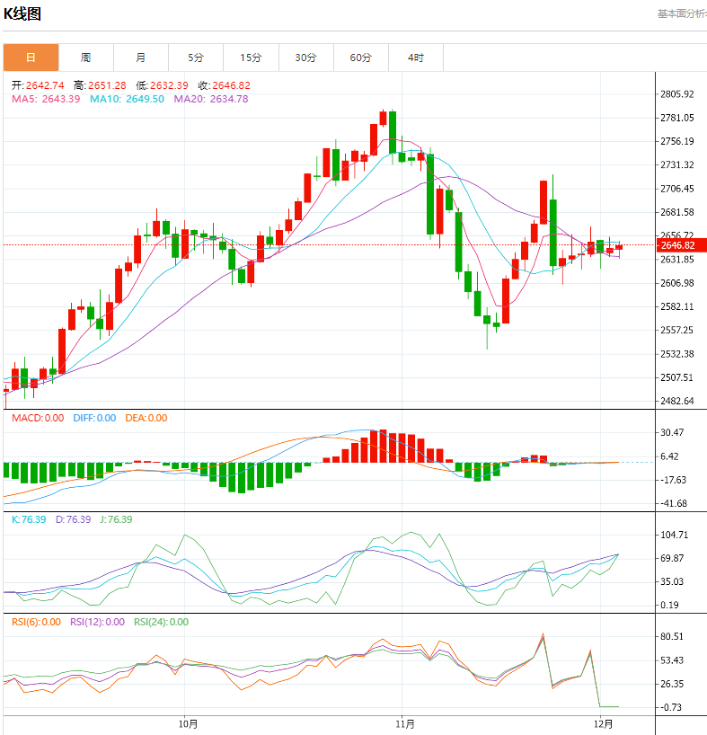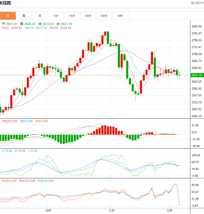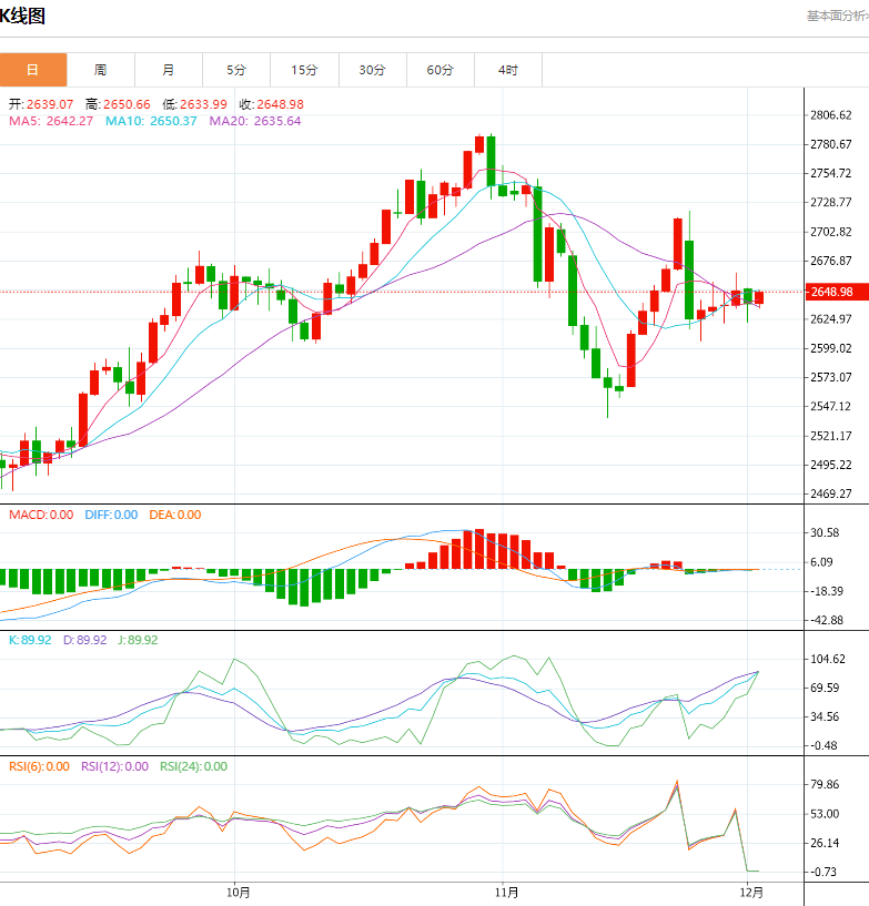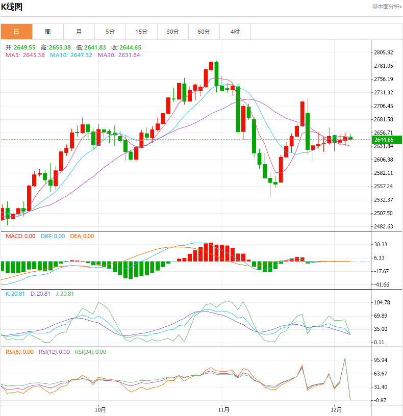 昨日市场回顾 周四,现货黄金盘中多次测试2650美元,但在美盘前急速下挫,截至目前,黄金报价2625.84。 黄金市场基本面综述 美国至11月30日当周初请失业金人数录得22.4万人,高于预期的21.5万人,前值上修2000人。 世界黄金协会:11月全球央行净买入黄金60吨,印度增持27吨黄金居首位。 美国加州近海发生7.0