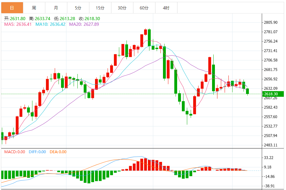 周四盘中,现货黄金报2649.92,涨幅0.01%。 今日分析:在2634.00之上,看涨,目标价位为2666.00,然后为2673.00。 技术点评:在2634.00之上,看涨,目标价位为2666.00,然后为2673.00。 支撑位:2634.002621.002612.00 阻力位:2678.002673.002666.00 (亚汇网编辑:冰凡)