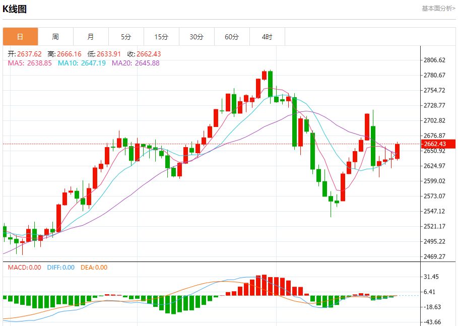 黄金走势主要点位解析 周一,4小时黄金波动轨指标关键点位2612、2625、2663、2676。黄金波动轨主要用在震荡行情,运用波动轨中轨(红色线)判断是趋势还是震荡行情,中轨稍稍朝上,先看做震荡偏多行情。在震荡偏空行情当中,则主要考虑行情运行到波动轨轨道附近的博弈反转机会。关注波动轨2.5倍波动轨下轨2512附