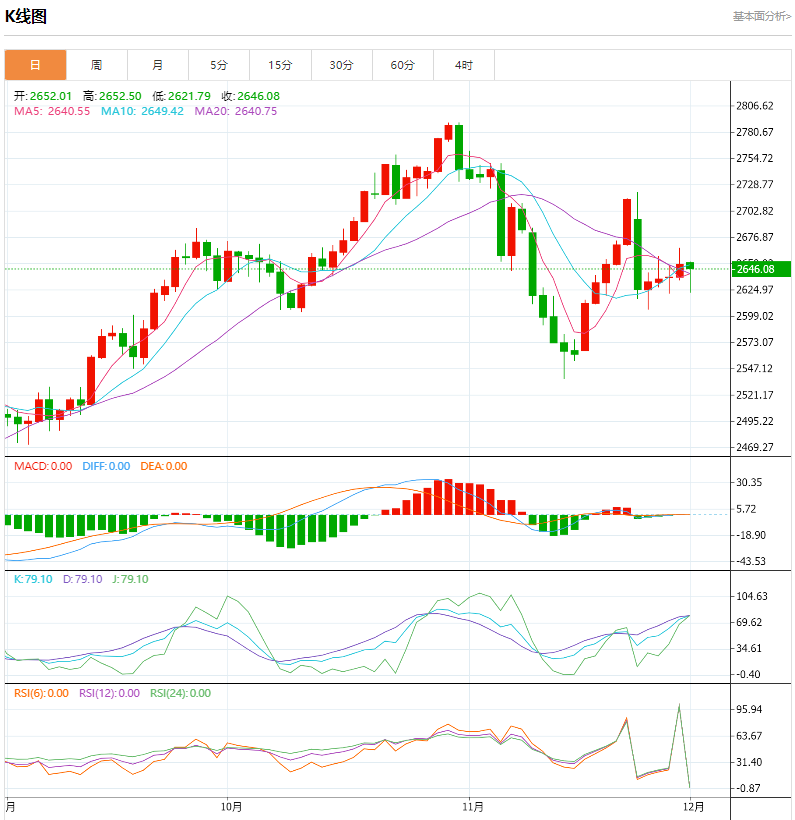 周一亚盘,现货黄金震荡微跌,目前交投于2646.95美元/盎司。金价上周五小幅上涨,受美元下跌和持续的地缘政治紧张局势提振,但11月仍创下去年9月以来最大月跌幅,主要是特朗普胜选引发的后抛售。11月份,现货黄金下跌3.4%,这是自2023年9月以来最大月跌幅,原因是"特朗普兴奋情绪"在11月早些时候提振美元,阻滞了黄金的