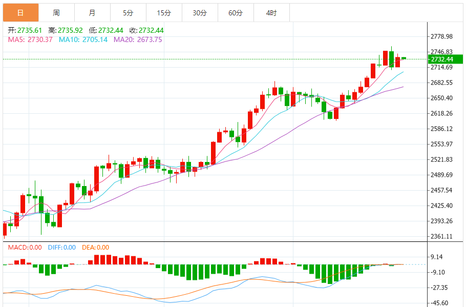 10月25日,周五亚市盘中,黄金交投于2732.29附近。 由于美国国债收益率因对避险资产的需求而下跌,黄金价格周四尾盘攀升。中东紧张局势加剧和美国大选困境支撑着黄金。 风险偏好有所改善,正如华尔街的绿色交易所描绘的那样。美国数据显示,劳动力市场仍然稳健,并不像美联储(Fd)预测的那样疲软,由于担心货币政策过