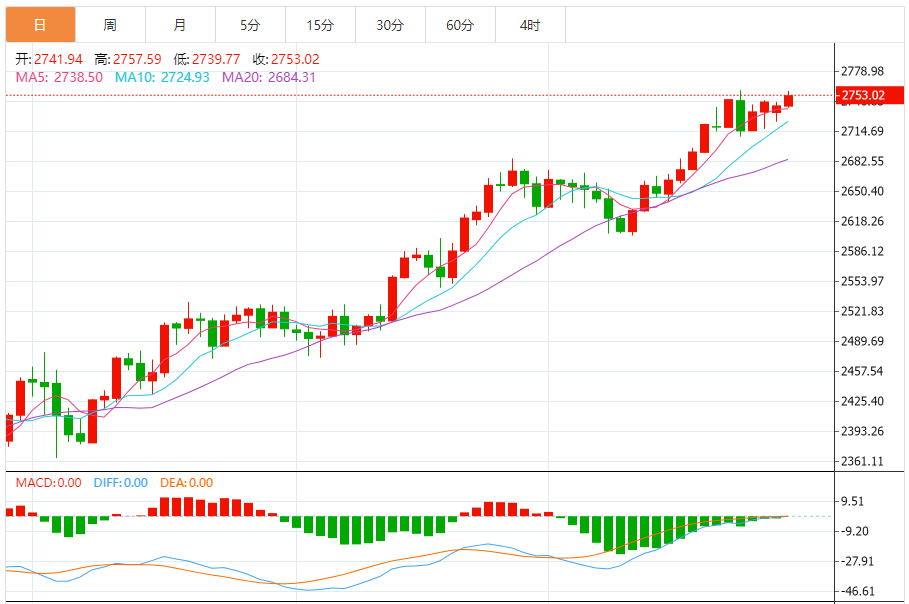 周二(10月29日),现货黄金短线突然大幅上涨,金价刚刚触及2753.04美元/盎司,创下日内新高,也逼近此前的历史高位。黄金价格在历史高位附近整固,目前保持看涨倾向。 黄金市场基本面分析 上周三,现货黄金价格创下2758.45美元/盎司的纪录新高。 周一,现货黄金大幅跳空低开,亚市早盘,金价一度