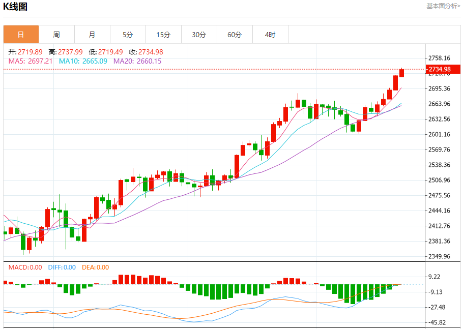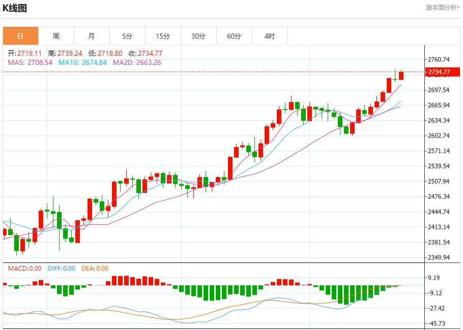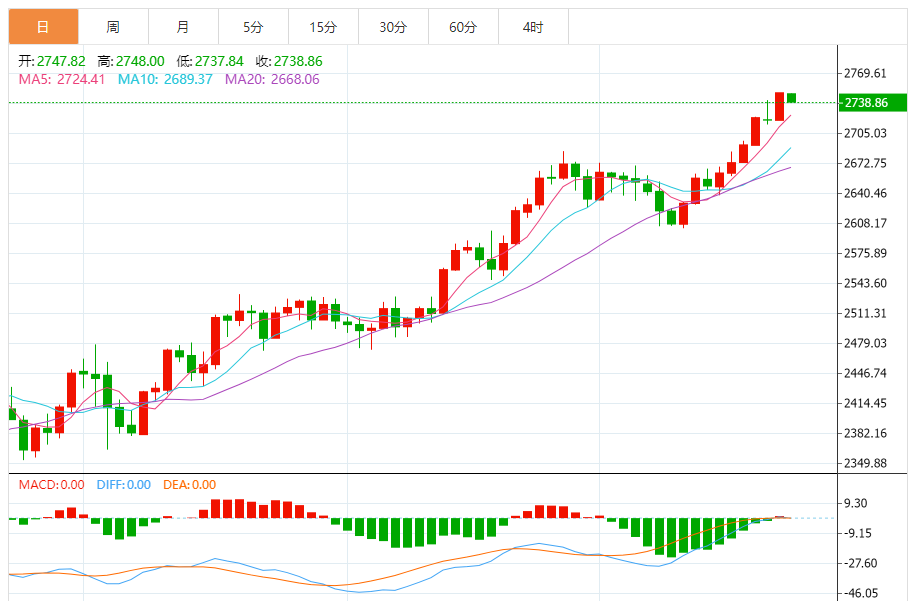 周三(10月23日),现货黄金交投在2739美元/盎司附近;上一交易日金价大涨逾1%。 黄金市场基本面分析 黄金周二创下纪录高位,并接近2750美元/盎司。在中东紧张局势和美国大选即将到来的市场气氛中,黄金保持积极的基调。 随着黄金不断创出新高,多头目前完全控制局势。 周二,受美国大选不