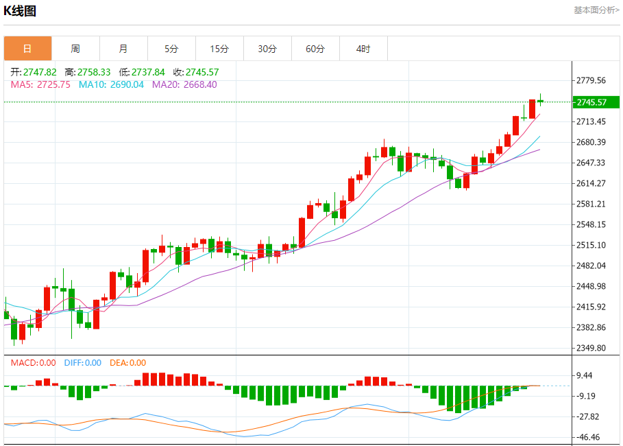 10月23日,周三亚市盘中,黄金交投于2745.15附近。 周二黄金价格维持在创纪录水平,美国时段金价最高交投于2745.01美元。考虑到中东地区的紧张局势和美国大选监控,在市场情绪低迷的情况下,金价维持看涨倾向。 由于担心前总统唐纳德-特朗普可能赢得总统竞选,投机兴趣开始定价美联储(Fd)降息步伐放缓。特朗普提倡的