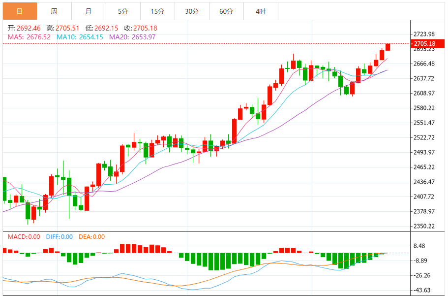 10月19日,周五纽市盘中,黄金在前一天突破2700美元心理水平后,周五在2700美元心理水平上方站稳脚跟,再创下历史新高。交易员看涨黄金,因为他们预计全球利率将走低。鉴于黄金是一种非支付利息的资产,这反过来又降低了持有黄金的预期机会成本,并使其对投资组合持有者更具吸引力。 随着交易员顺应趋势,黄金创下更高