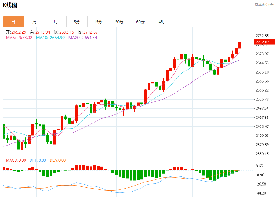 昨日市场回顾 周四,现货黄金周四创下历史新高,最高触及2696美元,截至目前,黄金报价2693.76。 黄金市场基本面综述 欧洲央行再次降息25个基点,存款机制利率从3.5%下调至3.25%。 美国9月零售销售增幅略超预期,强化美联储降息25个基点的预期。、 上周美国首次申请失业救济人数24.1万人,意外下降,飓风影响还