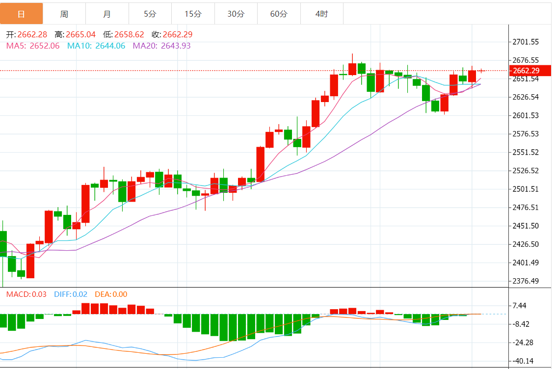 昨日市场回顾 周二,现货黄金周二小幅走高,最终收涨0.51%,报2662.27美元,截至目前,黄金报价2662.23。 黄金市场基本面综述 美联储戴利:美联储货币政策仍然具有限制性,正在努力降低通胀。 美联储博斯蒂克:预计在9月份50个基点降息的基础上,今年将再降息25个基点。 以色列召开安全磋商会议,就如何回应