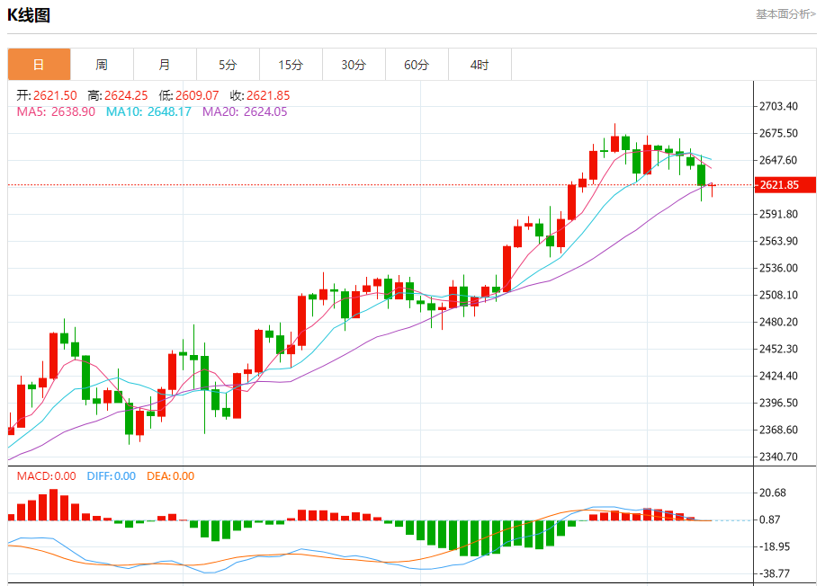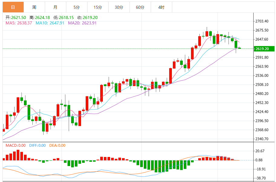 10月9日,周三亚市早盘,黄金交投于2621.21附近。周二,在美国强劲的就业报告和新闻通讯社透露真主党支持在他们与以色列之间的冲突中休战的呼吁后,黄金价格大幅下跌。因此,中东冲突可能缓和的迹象为交易者获利打开了大门。黄金收于2,615美元,跌幅超过1%。 美国股市仍然受到市场情绪改善的支撑。由于担心中东敌对行动