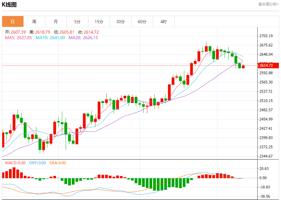 10月9日,周三欧市盘中,黄金价格连续第六天面临一些抛售压力,目前略高于三周低点,在前一天触及的2605-2604美元区域附近。美元(UD)屹立在7周高点附近,因为交易员继续押注美联储(Fd)再次大幅降息。这一点,再加上黎巴嫩真主党和以色列之间可能停火的消息,被证明是破坏这种商品的关键因素。 下跌可能进一步归因于
