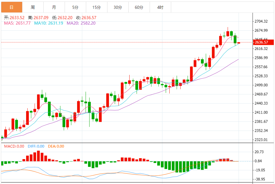 周二(10月1日),现货黄金目前位于2637.06美元/盎司附近,涨幅为0.10%。受美联储启动宽松周期以及全球央行效仿美联储的举措推动,金价上周触及2685美元的历史新高后回落。此次回调是否会进一步加剧,还是黄金将恢复上涨趋势并进一步走高?黄金在创下历史新高后延续回调走势。不过,黄金在短期、中期和长期内仍处于上涨