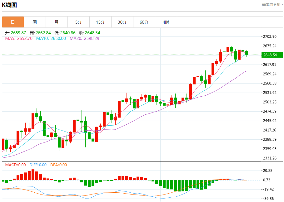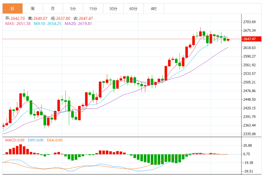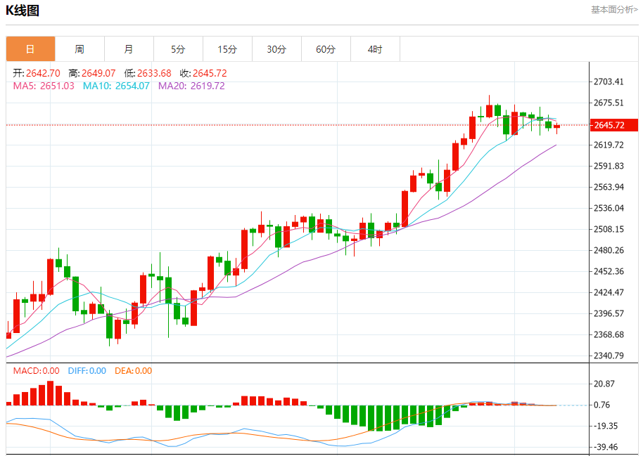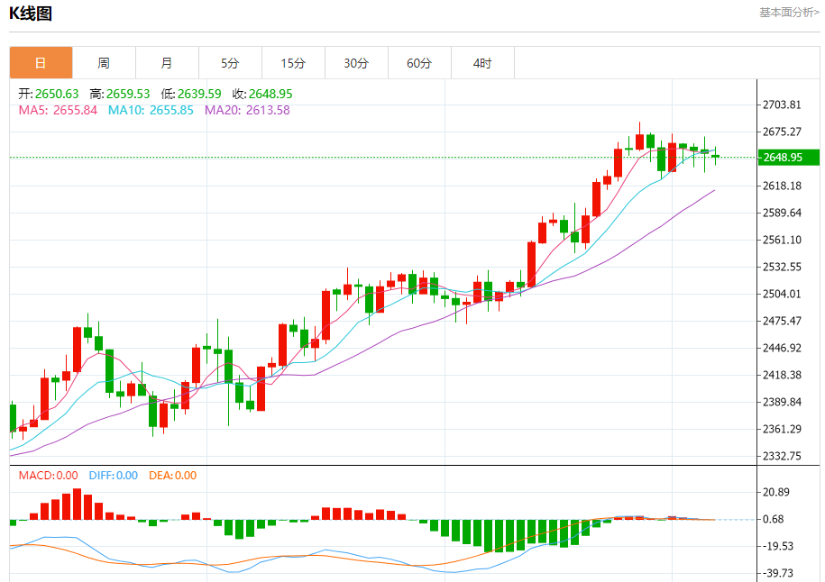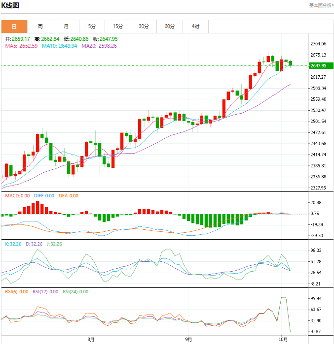 10月7日,周一亚市盘中,黄金价格连续第四日下跌,处在2,650美元附近。上周五公布的美国非农就业人数强劲,美元进一步上扬,给黄金带来了一定的抛售压力。 美国劳工统计局上周五公布的数据显示,9月份美国非农就业人数(NF)攀升了25.4万。这一数字高于8月修正值15.9万,也高于期值14万。9月失业率从8月份的2.4%下降