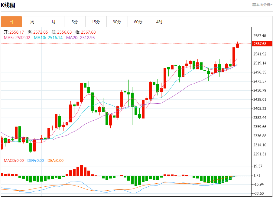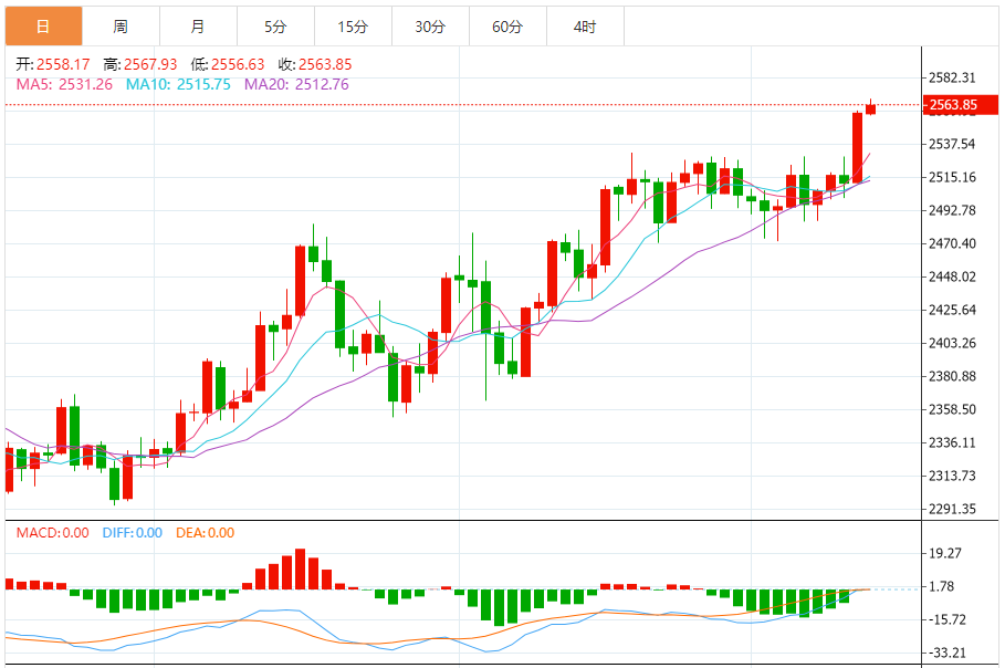 周五(9月13日),现货黄金在昨日暴涨后延续升势,目前金价交投在2565美元/盎司附近;金价稍早飙升至2568.03美元/盎司,刷新历史新高。 黄金市场基本面分析 在周四欧洲央行宣布货币政策以及美国公布相关宏观经济数据之后,现货黄金价格飙升至历史新高,目前保持看涨势头。 现货黄金周四收盘暴涨47.