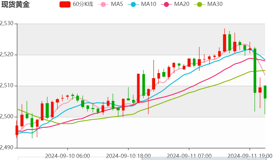 周四(9月12日),现货黄金在隔夜纽约时段回落后有所反弹,目前金价交投在2518美元/盎司附近。 黄金市场基本面分析 黄金价格周三在2528.95美元/盎司见顶。在美国CI数据发布后,金价改变走向,并一度跌向2500美元/盎司水平。不过,金价在2500美元/盎司左右遇到买家。 美国劳工统计局周三报告称,美