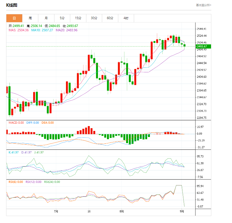 周一(9月2日),现货金下跌约0.1%,收盘在每盎司2499.29美元,盘中稍早曾跌至8月23日以来最低2489.93美元。由于美元继续反弹之中,金价也是持续处于小幅调整性回落走势行情。 市场对于美联储9月份将会开启降息的预期已是板上钉钉,但金价要想走高,关键还是需要更加明确是降息25基点还是降息50基点。如果出现降息50个