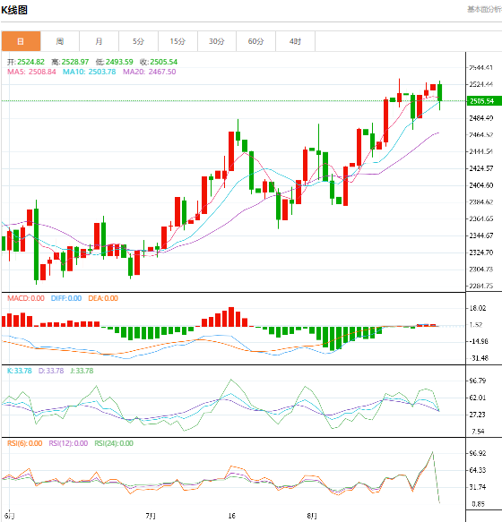8月26日,周一欧市初盘,黄金在2500美元心理支撑位附近小幅下跌。然而,由于市场对美联储(Fd)将于9月开始降低借贷成本的预期不断上升,黄金的下行空间可能有限。较低的利率通常对黄金有利,因为它降低了持有非支付利息资产的机会成本。 此外,中东地缘政治紧张局势升级和经济不确定性可能会提振避险需求,从而有利于