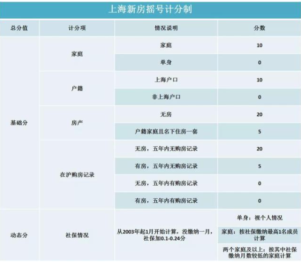 通过表格,我们也可以看到本次新房摇号“积分制”,分为基础和动态两大部分。其中,动态部分计算相对简单,主要是社保缴纳因素。按缴纳社保月份数计算,每月为0.1分,依次累加。而基础部分,相对复杂:包含了婚姻、户籍、名下房产、5年内购房情况共4大因素。针对此次上海新房摇号积分制,小编为大家整理了以下常见问题。