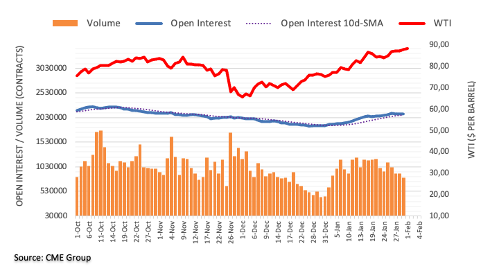 周一WTI原油价格的涨势依然有增无减。 该商品最终成功收盘于88美元关口上方,同时未平仓合约增加,使得短线进一步上涨的大门继续敞开,短期目标为90美元关口。