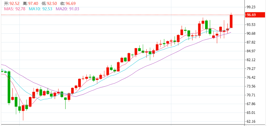 技术上,大宗商品价格最近从2021年7月开始上涨,越过了上升倾斜的趋势线,最迟约为94.40美元,刷新了2014年9月以来的最高水平。然而,超买的相对强弱指数状况可能会考验多头,这反过来又要求日收盘价超过94.40美元,才能排除回调的可能性。