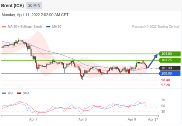 交易策略: 在 100.00 之上,看涨,目标价位为 103.25 ,然后为 104.80 。