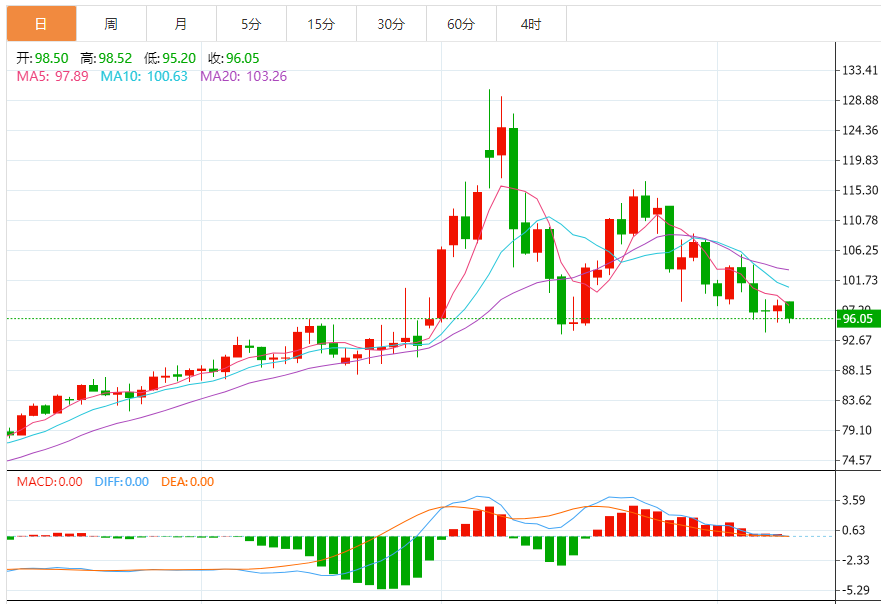 今日预期交易区间在 93.50 支撑位和 98.95 阻力位之间。