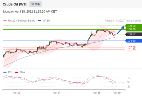 在 104.50 之上,看涨,目标价位为 108.30 ,然后为 109.50 。