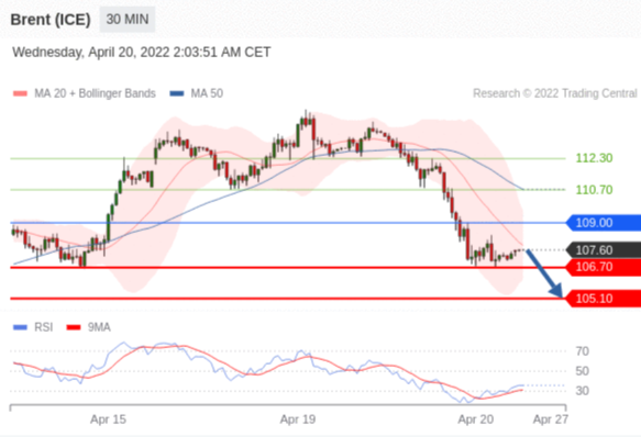 交易策略: 在 109.00 之下,看跌,目标价位为 106.70 ,然后为 105.10 。