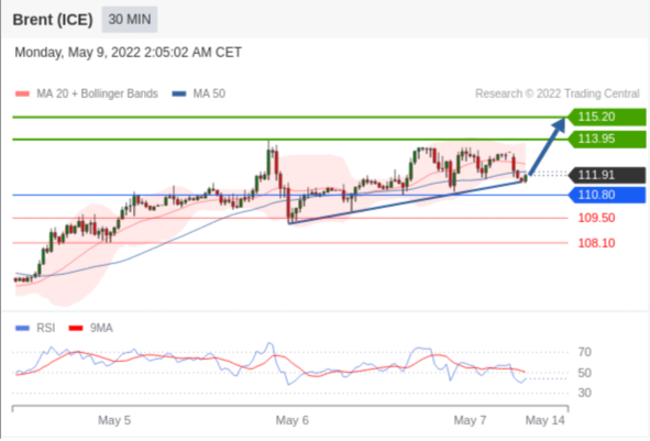 交易策略: 在 110.80 之上,看涨,目标价位为 113.95 ,然后为 115.20 。