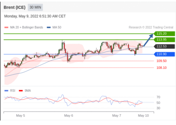 在 110.90 之上,看涨,目标价位为 113.95 ,然后为 115.20 。