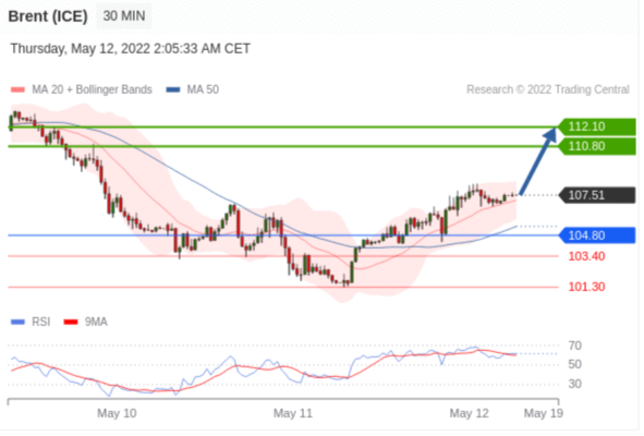 在 104.80 之上,看涨,目标价位为 110.80 ,然后为 112.10 。