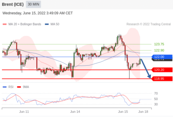 交易策略: 在 122.00 之下,看跌,目标价位为 120.20 ,然后为 118.95 。