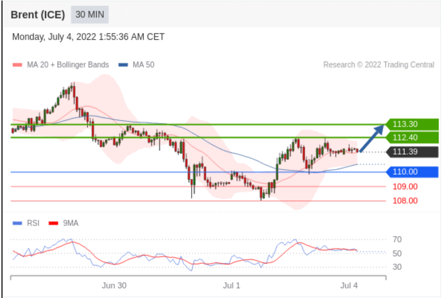 交易策略: 在 110.00 之上,看涨,目标价位为 112.40 ,然后为 113.30 。