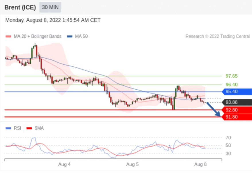交易策略: 在 95.40 之下,看跌,目标价位为 92.80 ,然后为 91.80 。