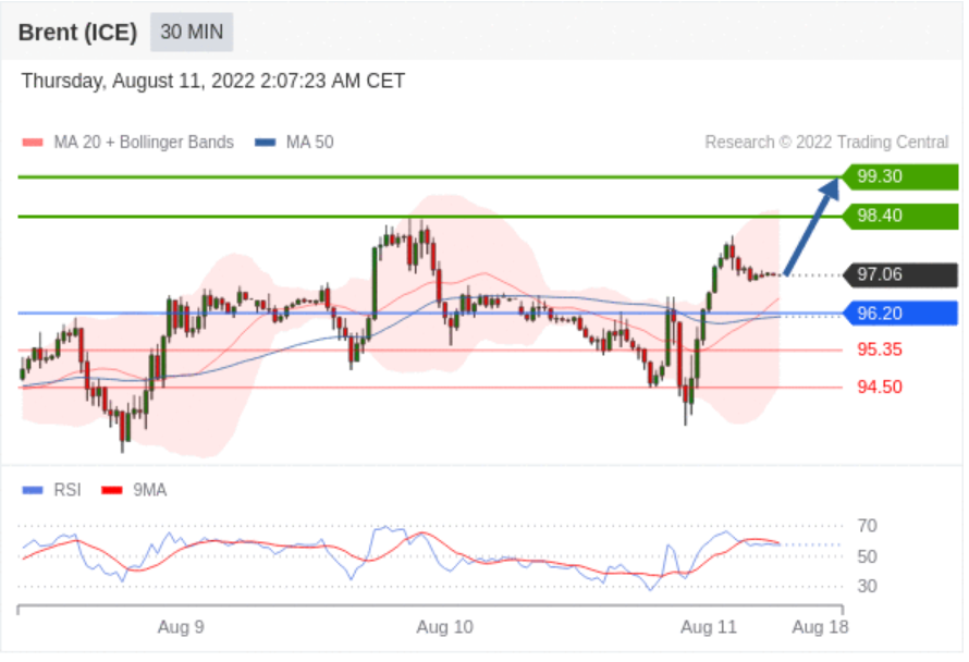 交易策略: 在 96.20 之上,看涨,目标价位为 98.40 ,然后为 99.30 。
