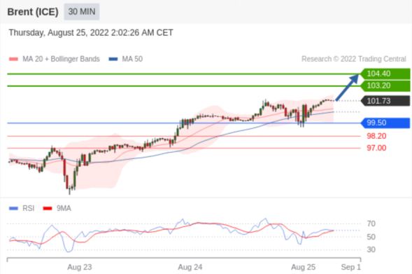 交易策略: 在 99.50 之上,看涨,目标价位为 103.20 ,然后为 104.40 。