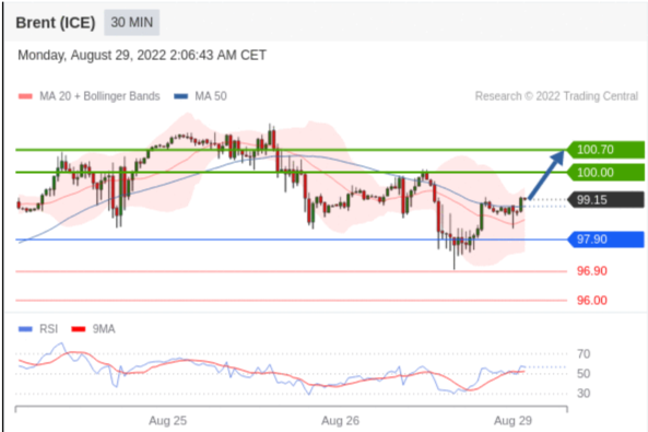 交易策略: 在 97.90 之上,看涨,目标价位为 100.00 ,然后为 100.70 。