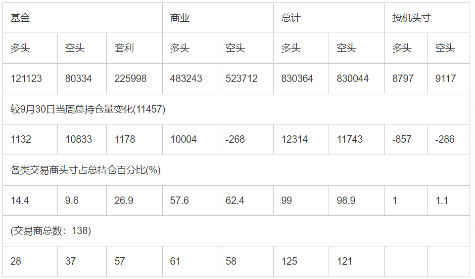截止9月16日当周洲际交易所(欧洲)原油期货分类持仓报告: