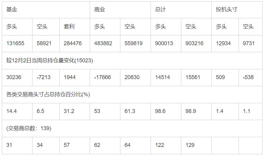 截止12月9日当周洲际交易所(欧洲)原油期货和期权分类持仓报告: