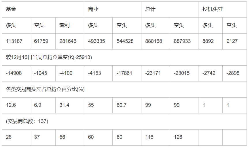 截止12月16日当周洲际交易所(欧洲)原油期货和期权分类持仓报告: